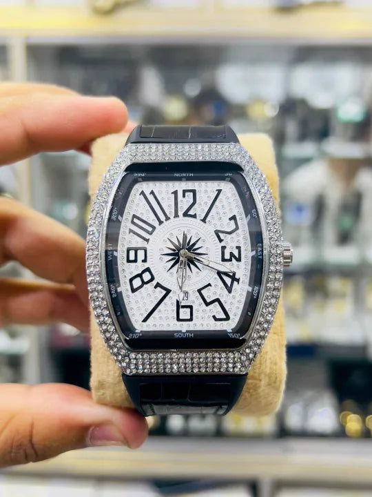 Iced dial dripping in luxury, available in Black, Gold, Blue & Red.